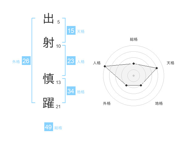 出射 慎躍さんの総格は49画の2点!