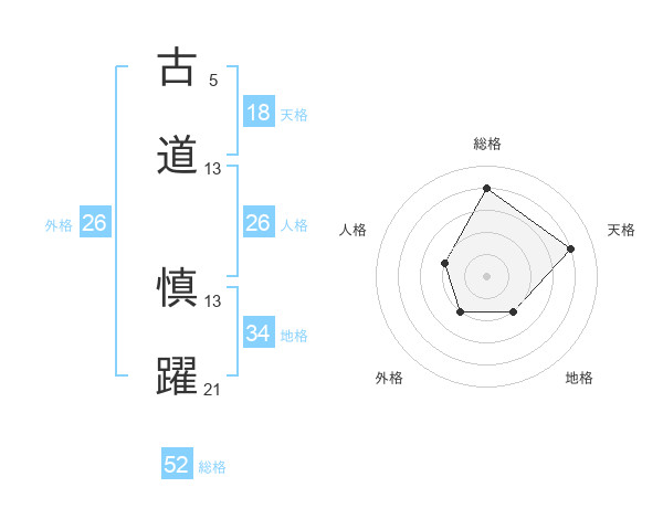 古道 慎躍さんを姓名の画数から五運を鑑定