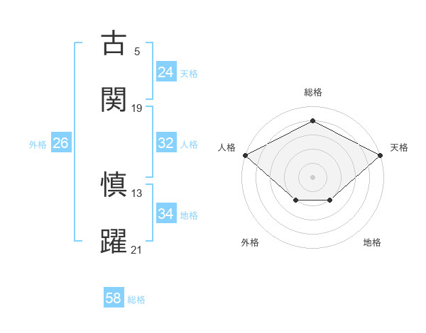 古関 慎躍さんの総格は58画の4点!