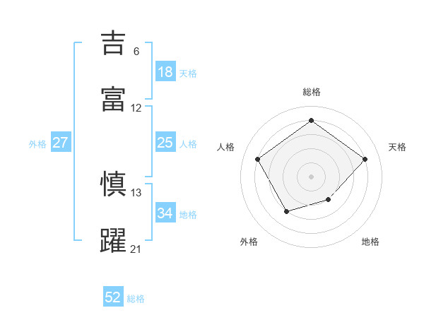 吉富 慎躍さんの総格は52画の4点!