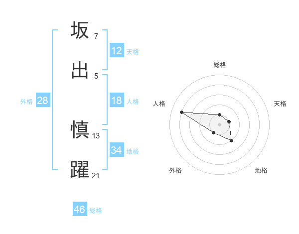 坂出 慎躍さんの総格は46画の1点!