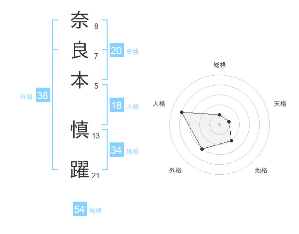 奈良本 慎躍さんの総格は54画の1点!