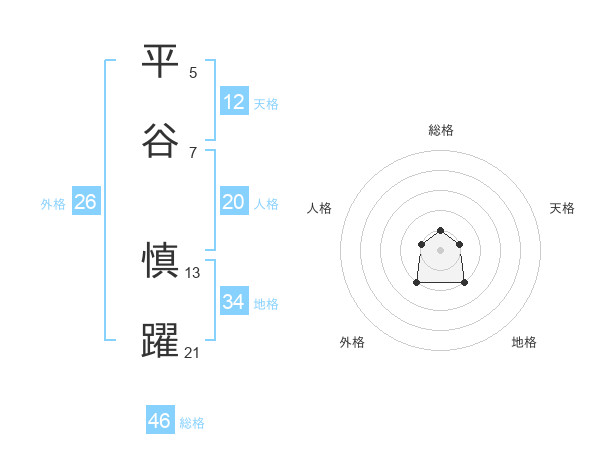 平谷 慎躍さんを姓名の画数から五運を鑑定