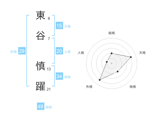 東谷 慎躍さんの総格は49画の2点!