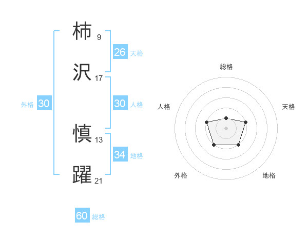 柿沢 慎躍さんの総格は60画の1点!