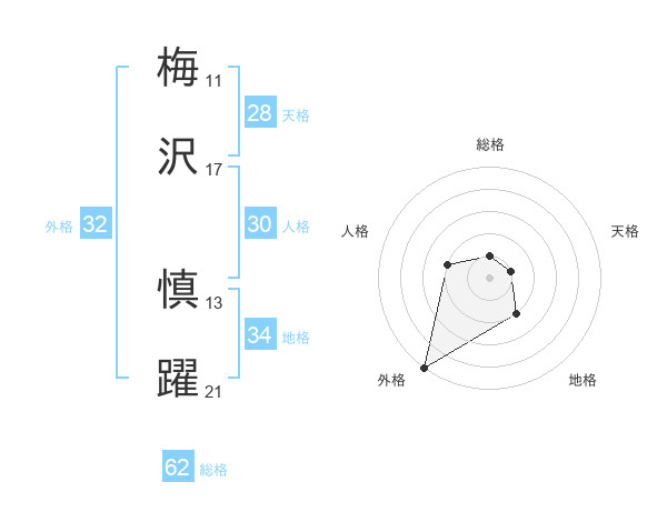 梅沢 慎躍さんの総格は62画の1点!