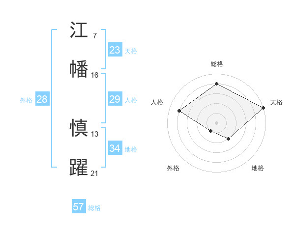 江幡 慎躍さんの総格は57画の4点!