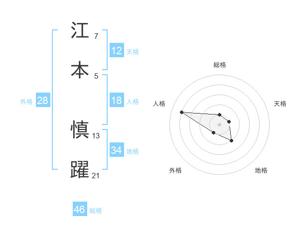 江本 慎躍さんの総格は46画の1点!
