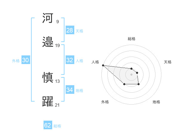 河邉 慎躍さんの総格は62画の1点!