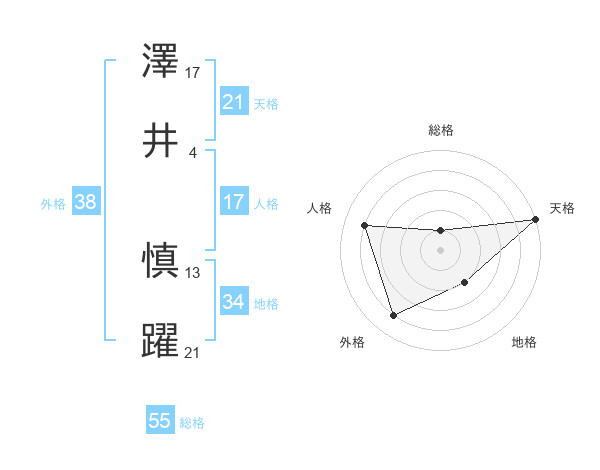 澤井 慎躍さんの外格は38画の4点!