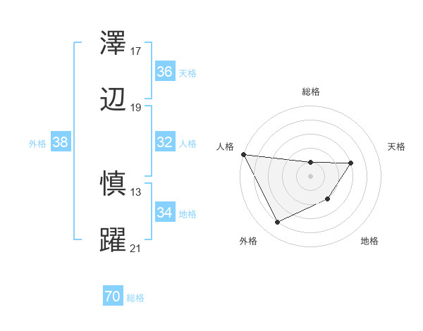 澤辺 慎躍さんの外格は38画の4点!