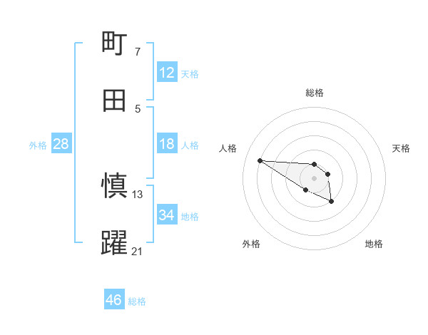 町田 慎躍さんの総格は46画の1点!