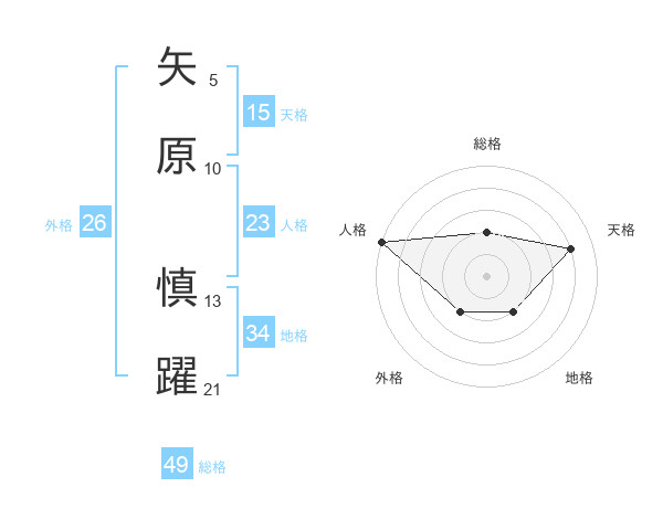 矢原 慎躍さんを姓名の画数から五運を鑑定