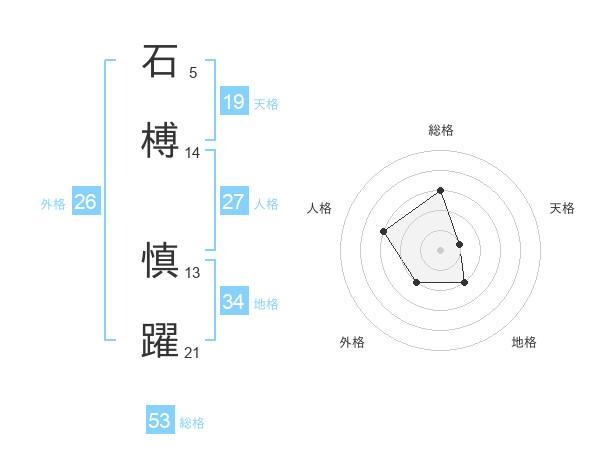 石榑 慎躍さんを姓名の画数から五運を鑑定