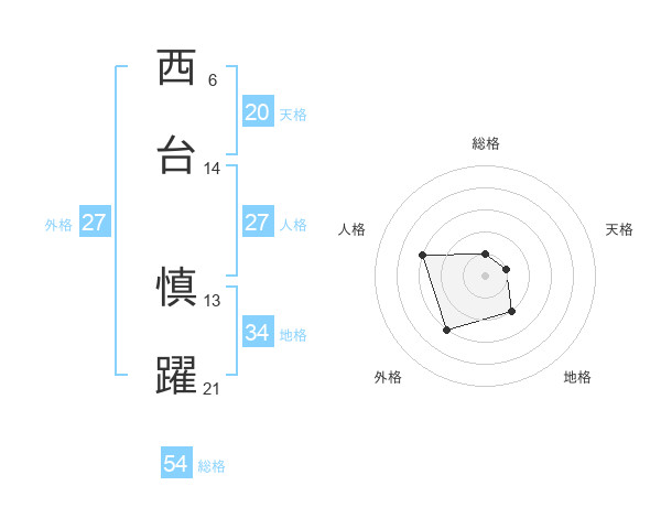 西台 慎躍さんの総格は54画の1点!