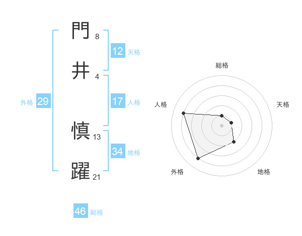 門井 慎躍さんを姓名の画数から五運を鑑定