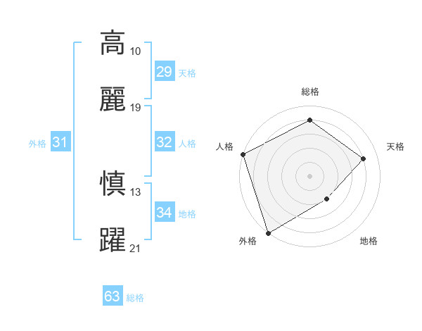 高麗 慎躍さんの総格は63画の4点!