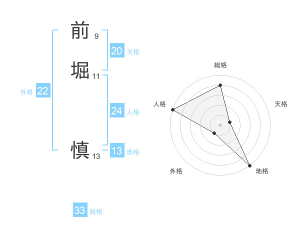 前堀 慎さんの総格は33画の4点!
