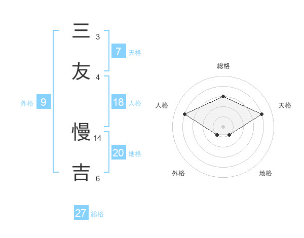 三友 慢吉さんの総格は27画の3点!