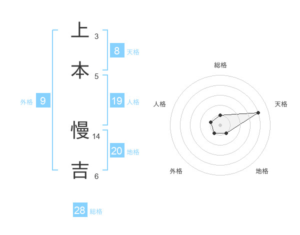 上本 慢吉さんを姓名の画数から五運を鑑定