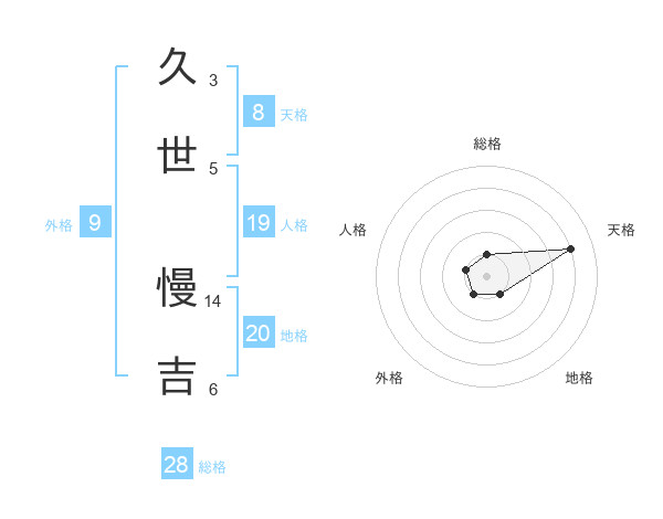 久世 慢吉さんを姓名の画数から五運を鑑定