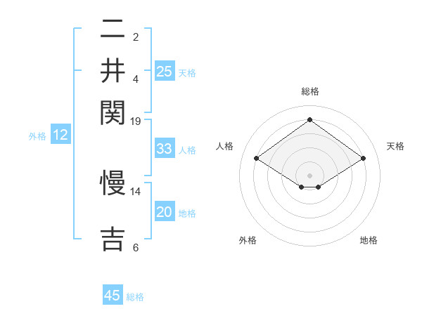 二井関 慢吉さんの総格は45画の4点!