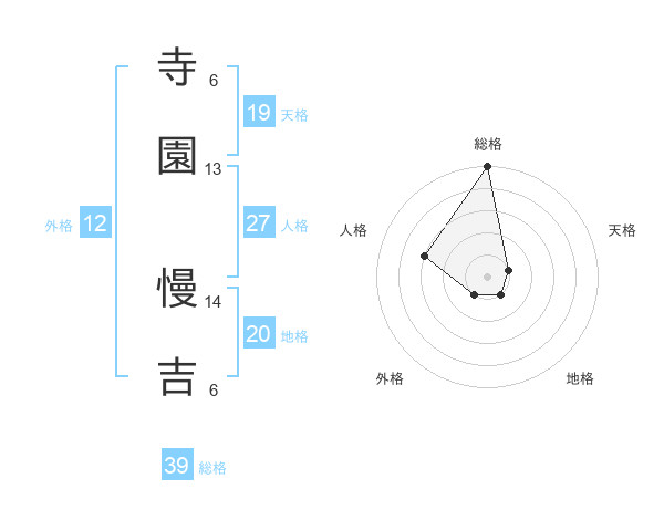 寺園 慢吉さんを姓名の画数から五運を鑑定