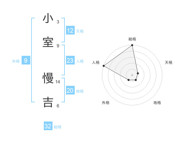 小室 慢吉さんを姓名の画数から五運を鑑定