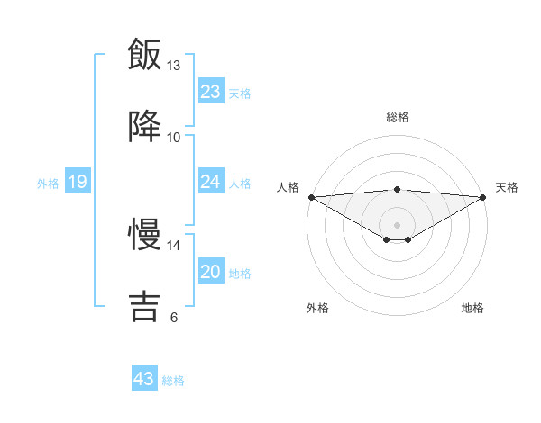 飯降 慢吉さんの総格は43画の2点!