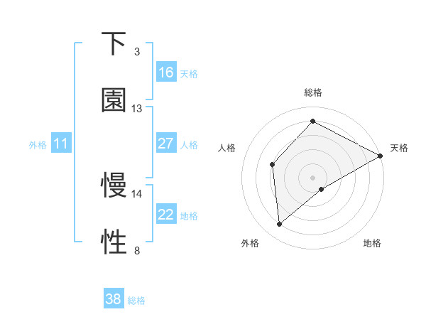 下園 慢性さんの総格は38画の4点!