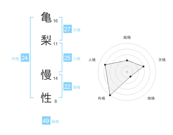 亀梨 慢性さんの総格は49画の2点!