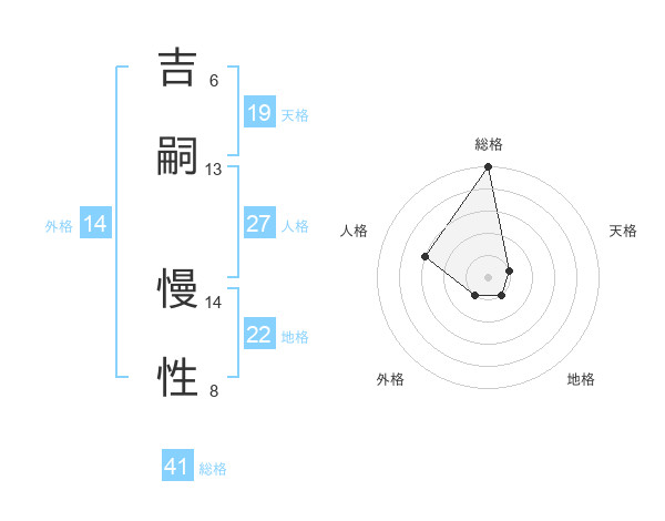 吉嗣 慢性さんの総格は41画の5点!