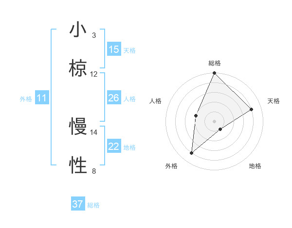 小椋 慢性さんの総格は37画の5点!