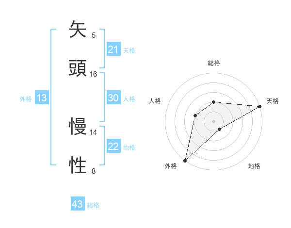 矢頭 慢性さんを姓名の画数から五運を鑑定