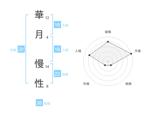 華月 慢性さんの総格は38画の4点!