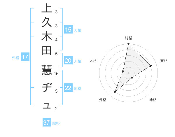 上久木田 慧ヂュさんを姓名の画数から五運を鑑定