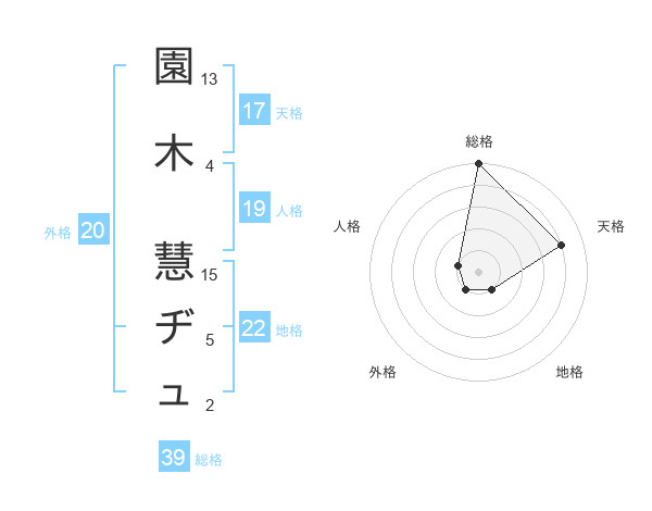園木 慧ヂュさんを姓名の画数から五運を鑑定