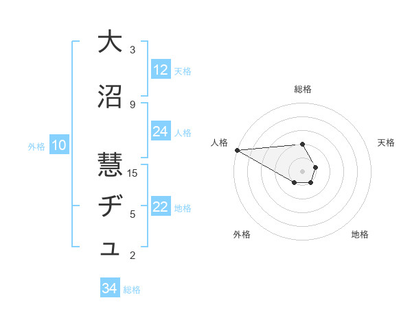 大沼 慧ヂュさんを姓名の画数から五運を鑑定