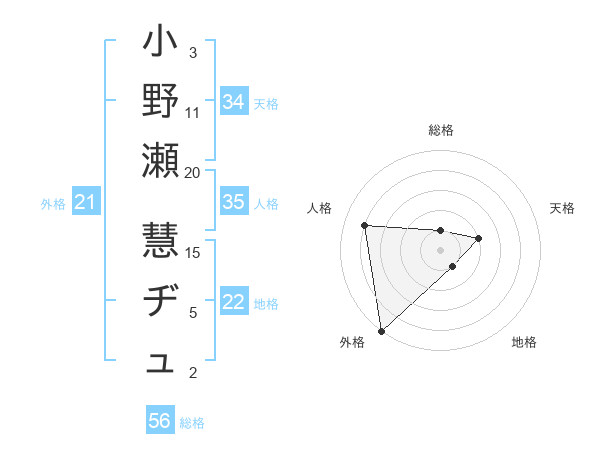 小野瀬 慧ヂュさんの外格は21画の5点!