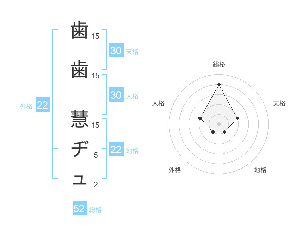 歯歯 慧ヂュさんの外格は22画の1点!