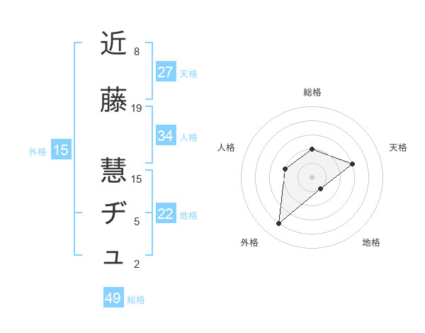 近藤 慧ヂュさんを姓名の画数から五運を鑑定
