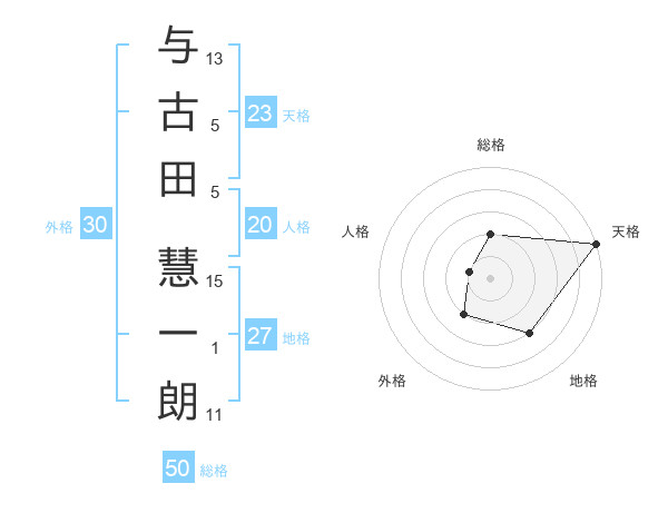 与古田 慧一朗さんを姓名の画数から五運を鑑定