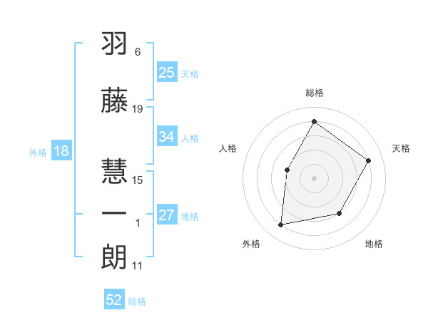 羽藤 慧一朗さんの総格は52画の4点!