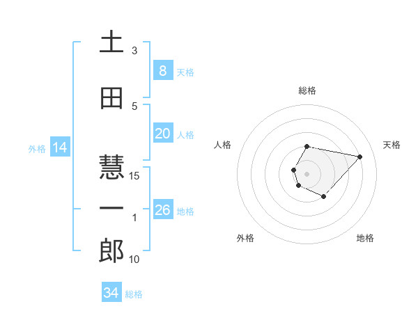 土田 慧一郎さんを姓名の画数から五運を鑑定