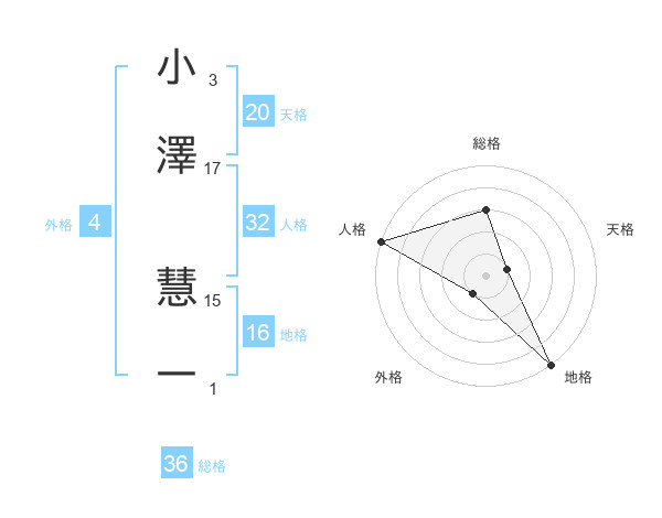 小澤 慧一さんの天格は20画の1点!