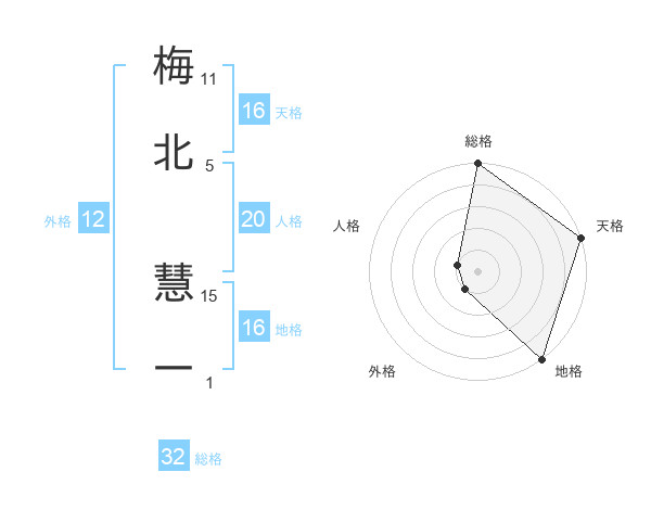 梅北 慧一さんの天格は16画の5点!