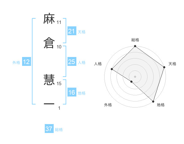 麻倉 慧一さんを姓名の画数から五運を鑑定