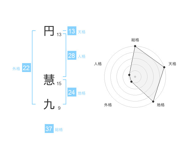 円 慧九さんの総格は37画の5点!