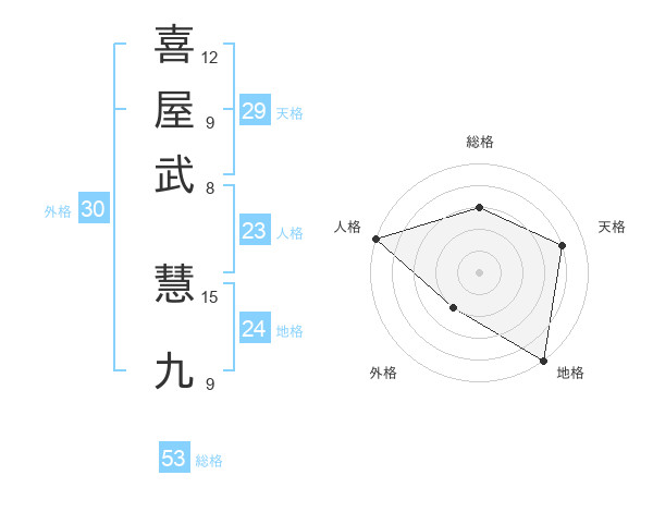 喜屋武 慧九さんを姓名の画数から五運を鑑定