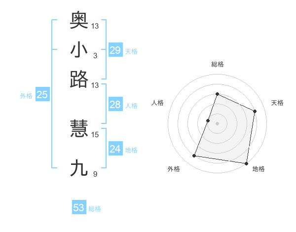 奥小路 慧九さんの総格は53画の3点!